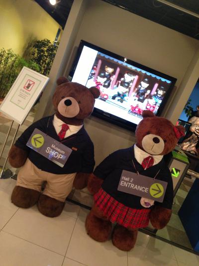 中は等身大のテディやミニチュアテディが、いろんなシチュエーションのセットでコスプレしていてかわいい動きをしています。
