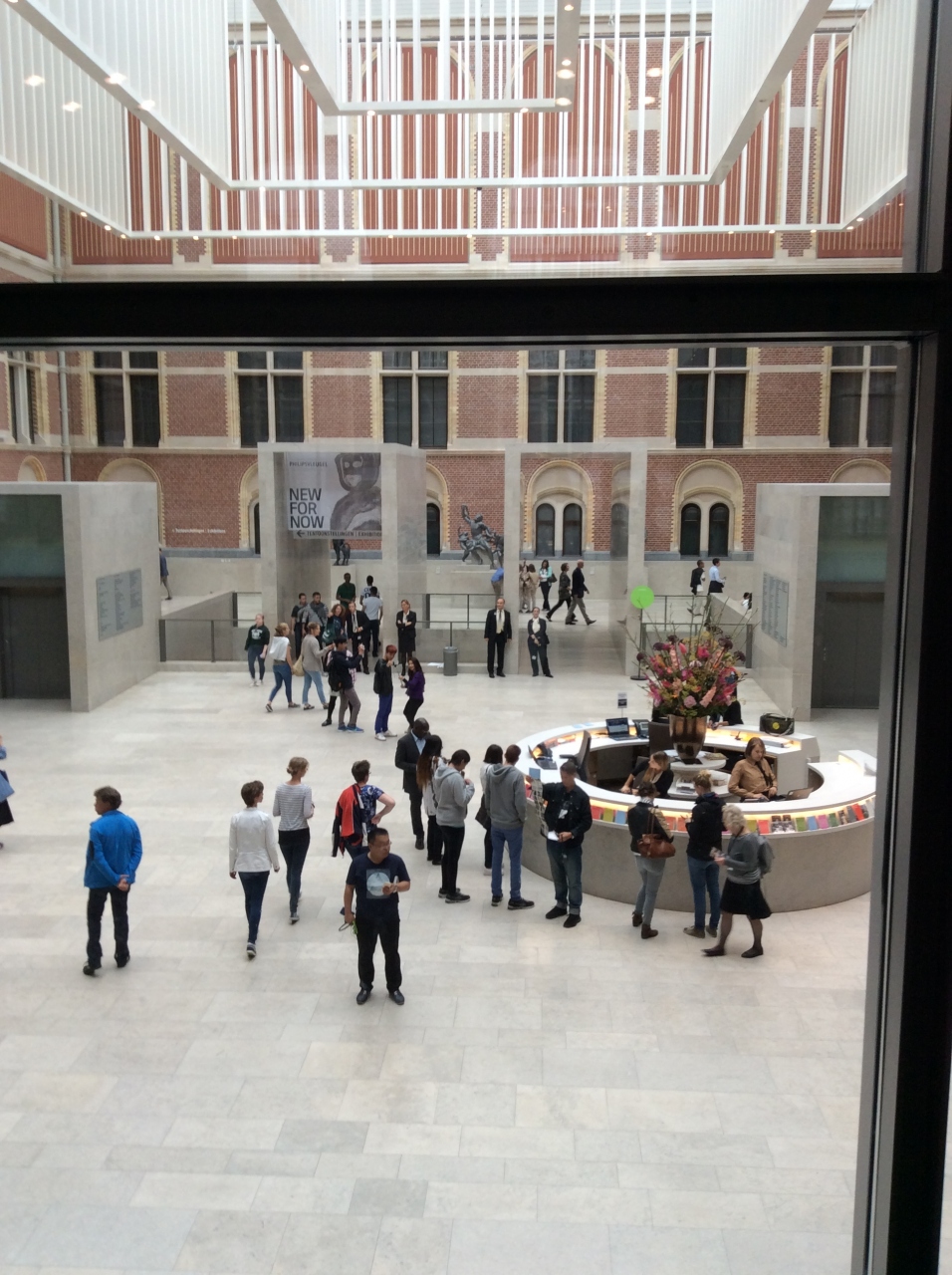 建物のアーチ型の入口を進むと(ただの通路だった)途中にすごく明るい綺麗な空間が見えました。そこを目指して階段を降りると美術館のインフォメーションでした。