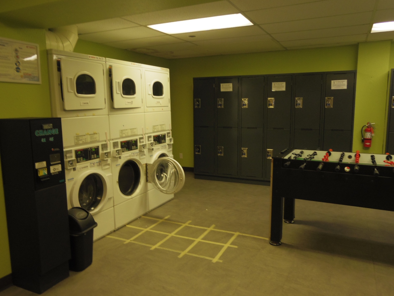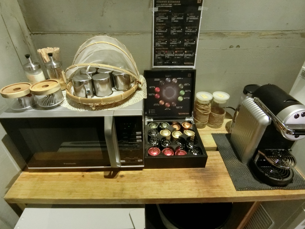 フロント階に食堂兼談話室があり、そこには洗濯機・乾燥機・自販機・両替機もあり、生活には困りません。食堂ではコーヒーが24時間無料で飲めます。食器や調理器具は自分で洗って片づける必要はありますが、無料で自由に使えます。