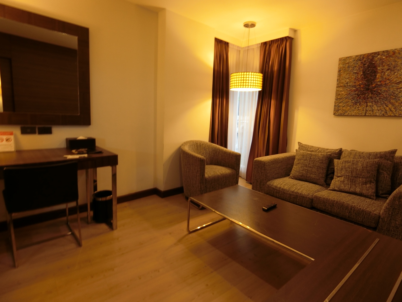 ホテルは駅から真っ直ぐメイン通りを歩いて着きますが、距離はややあります。歩いて15分程度なので重い荷物がある方はタクシーの方が良いです。