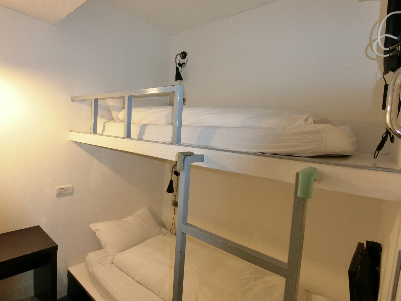 自分が泊まったのは二段ベット設置されている2人用個室を1人で利用しました。客室内は二段ベット、洗面所、南京錠がかけられるロッカー(棚?)のみ。トイレ・シャワーは共有なので、部屋の外にあります。