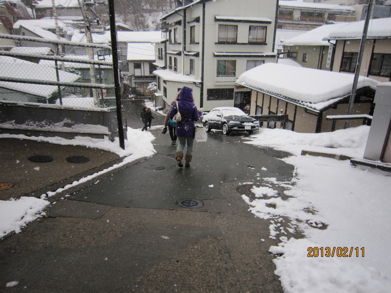 雪が降った日だったので、登りよりも下りの方が滑りそうで怖かったです。