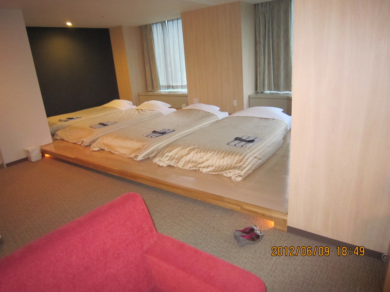 部屋は、「シングルベッド×2+2畳ほどのたたみ」部屋を利用しました。
