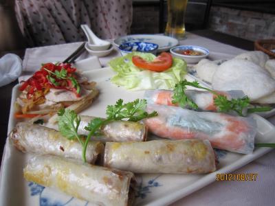 前菜アラカルト的な1皿には、生春巻き×2、揚げ春巻き×4、シャキシャキした野菜いため?(不明だけどおいしい)、えびせん のセットで、2人には食べたいものがちょうどよくセレクトしてあるのでよかった。