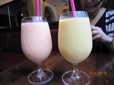あとから、友人と2人で、マンゴースムージーとプリンを追加注文。