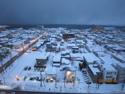 海側の部屋から見える景色は、高い建物がほとんどなく、雪で真っ白になっている景色と海までが一望できました。