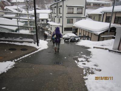 - 湯畑までちょっと歩く。急な坂だけどいい運動。