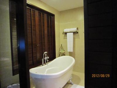 - シャワーが2か所あって、バスタブもおしゃれなものを使用
