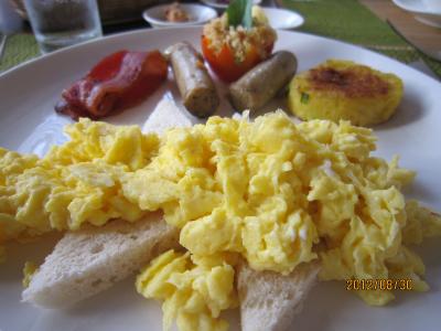 食事のとき、メニューの選び方を英語で説明されるので、朝っぱらから頭フル回転で目が覚めました。