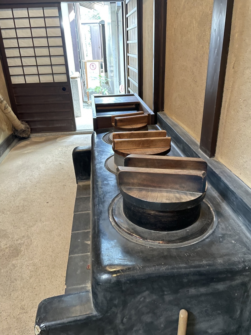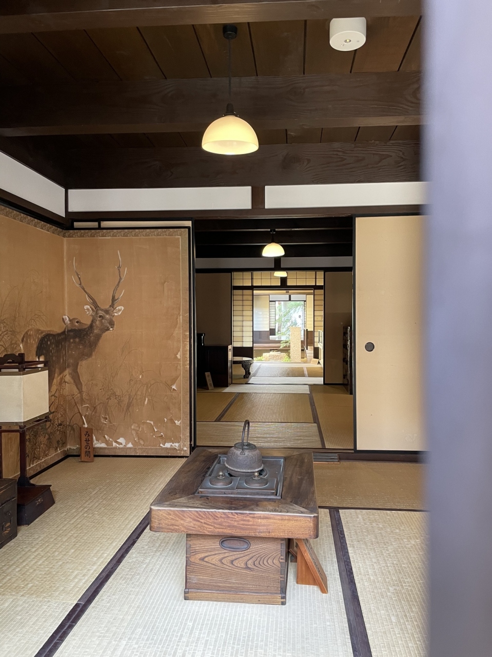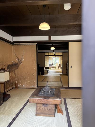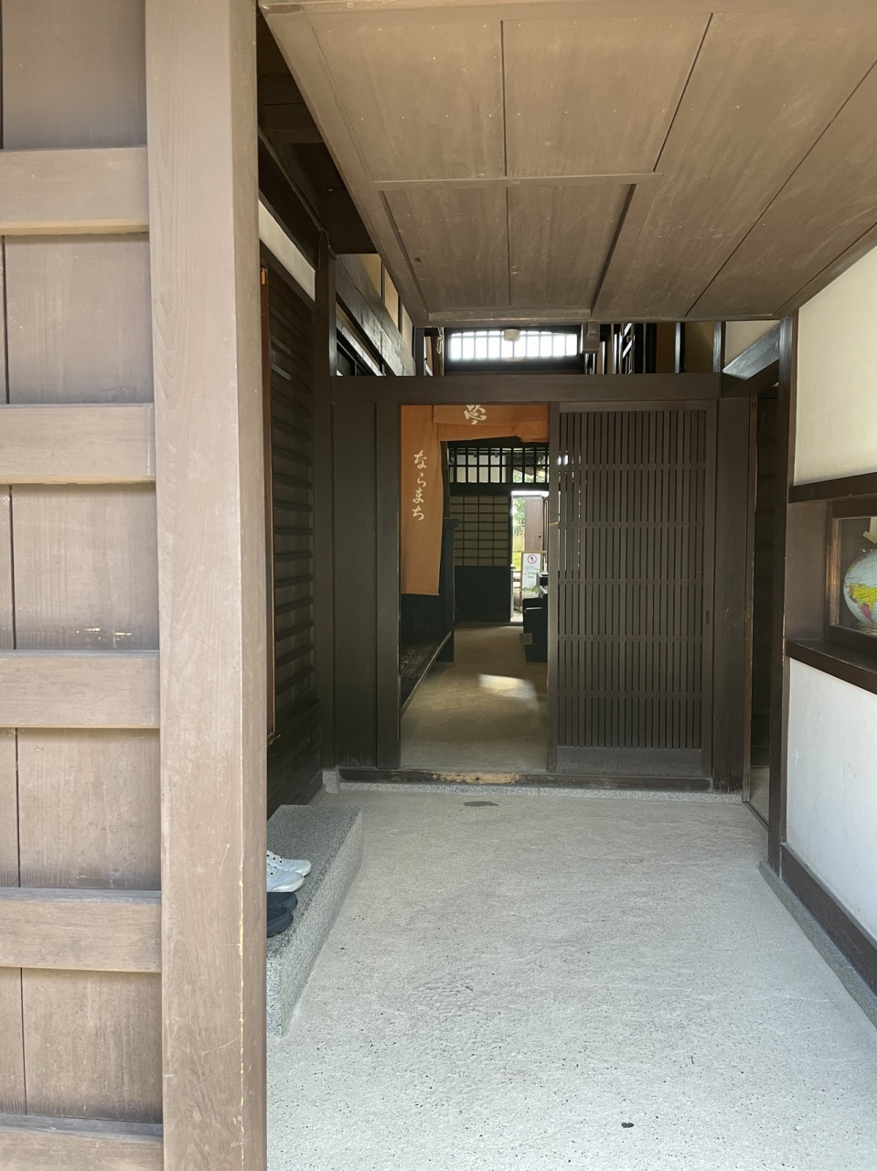 ならまち観光の要所、間口が狭く奥行きのある昔の町屋を無料で見ることができる施設。名前の通りの格子が使われた空間に箱階段や調度品と古い物が大切に保存され、さらに手入れされた美しい中庭とならまちならではの風情があります。