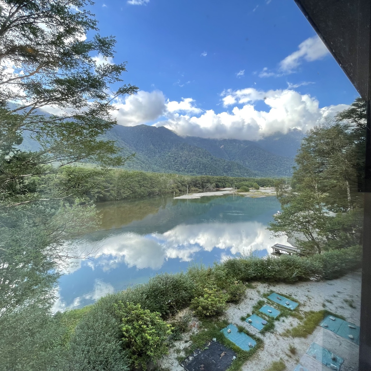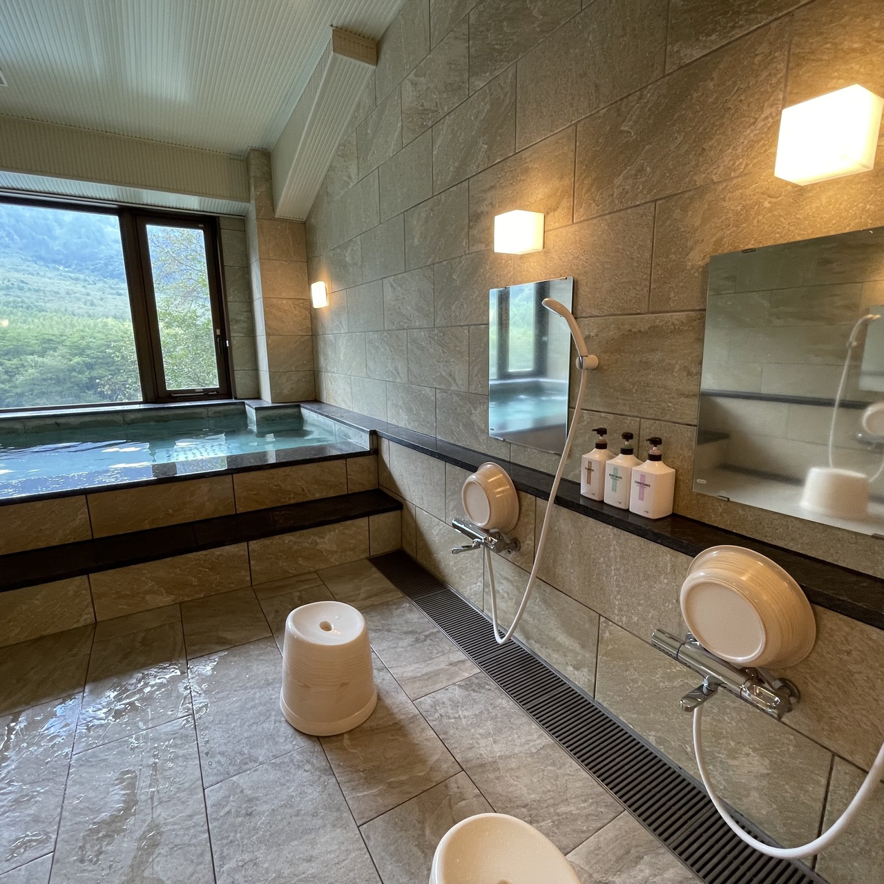 大正池の目の前で上高地の入口。多くの人がこちらのホテルの前のバス停で降りて河童橋を目指す起点なので、大正池ホテルに宿泊すると散策前に荷物を預けて、さらに帰りにはバスターミナルの荷物預り所まで荷物を運んでくれるサービスがあり便利。人気があるのは大正池が望めるお部屋。温泉ではありませんが、大正池が眺められる浴場は綺麗で気持ち良く癒されます。お食事も美味しく頂きました。館内にある自販機が少し寂しいラインナップなので売店やホテルの外で購入となります。