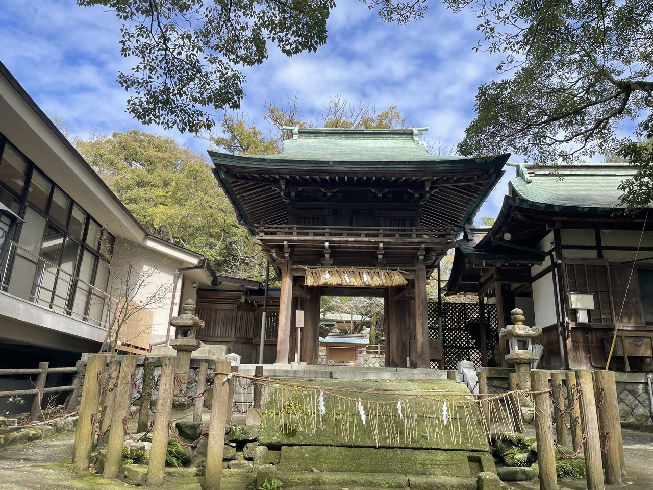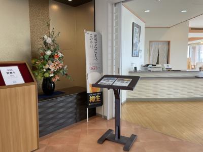 古くからある神社の休憩処としてはかなりモダンな建物と雰囲気。お参りの休憩に立ち寄り、お茶や軽食を頂くだけでなく、地域の企業とコラボしたお土産品も販売しているので、ここならではの物が買える。タイミングが合えばお花の時期に隣接する庭園で花々も楽しめる