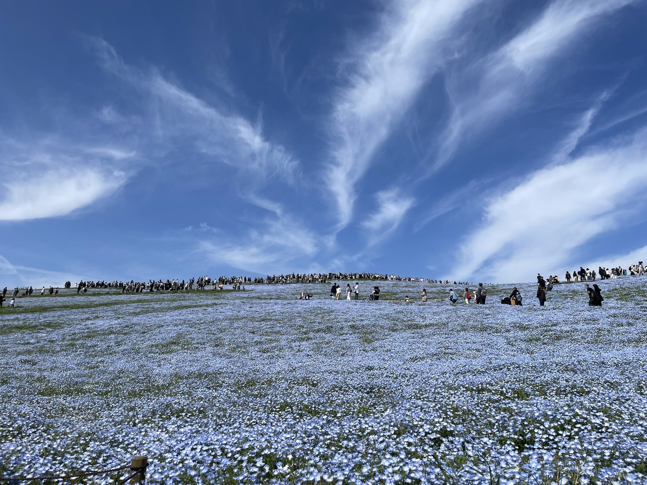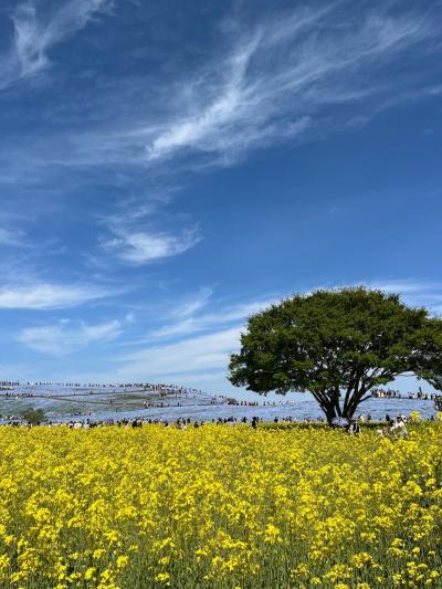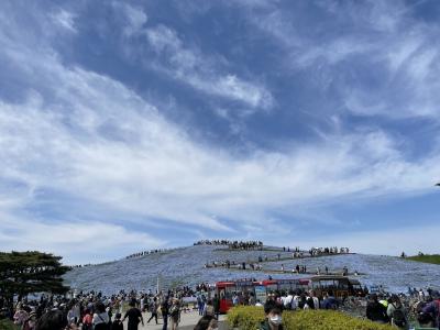ネモフィラで有名になった国営ひたち海浜公園。我が家から公共交通機関で行くには乗換えが必要で、車で行くにはネモフィラの時期は駐車場に入るだけでも大変だろうと、ネモフィラの開花予想をホームページでチェックし混雑覚悟で日曜日に日帰りバスツアーで行ってきました。日帰りツアーなので、時間に限りがあり広い園内の一部しか回れませんし、公園にいる時間よりバスに乗っている時間の方が長かったのですが、それでもお天気に恵まれ見応えのある一面のネモフィラに感動。公園には季節のお花だけでなく思い思いに楽しめる広い草原、サイクリング場、パターゴルフ場、バーベキュー会場、観覧車などの乗り物など、1日中いても満足できる施設があります。