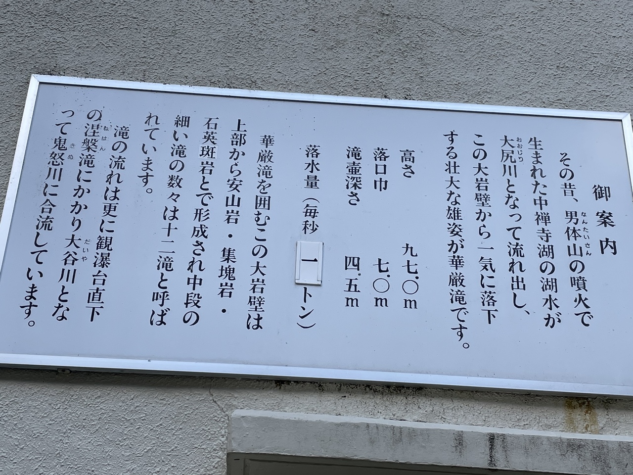 日本三大名瀑の一つで97mの高さから落ちる華厳滝の他にも滝が見られる