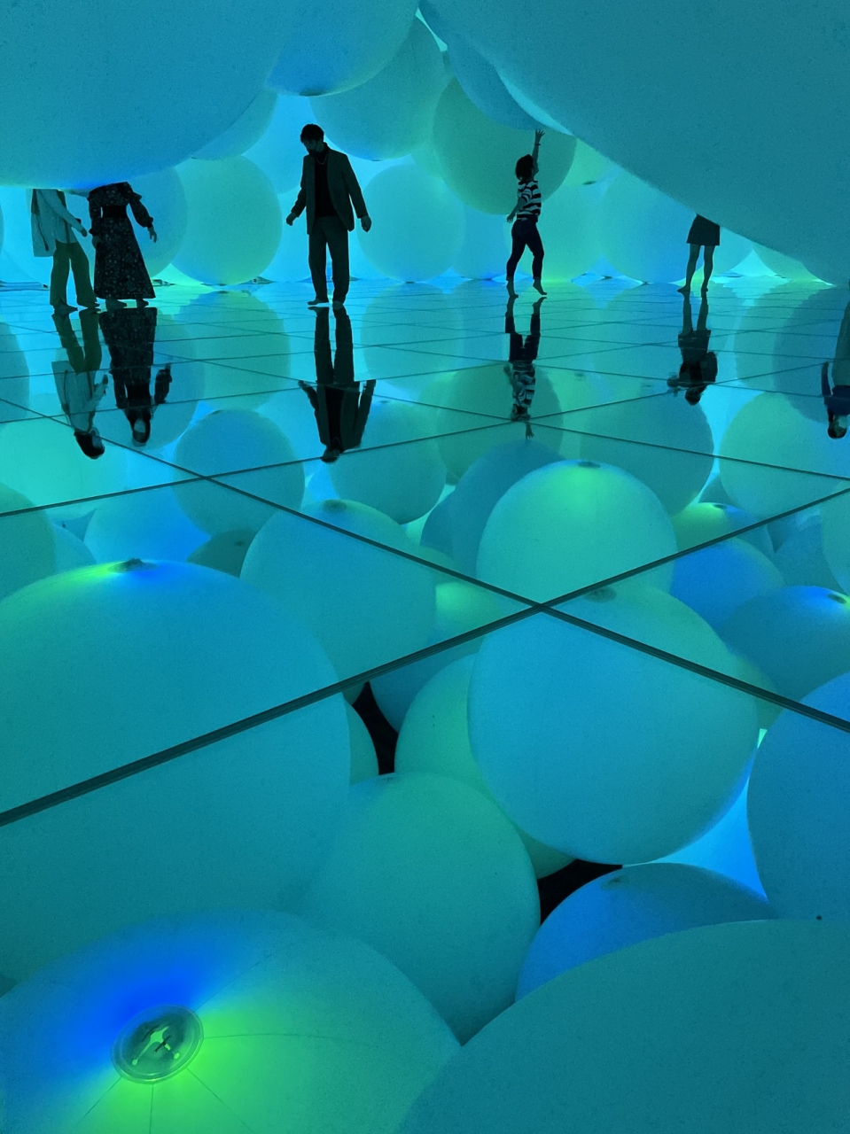 入口で裸足になり携帯電話以外はロッカーに預け、水の流れる中や球体がひしめく中や鏡に光と映像空間とさまざまな体験が出来、映える写真も撮れる面白い施設。若いカップルの多い印象。暗いので途中どちらに行くのか迷うのとウォーターエリアは膝下とは言え結構な水量なので水の中で転倒したら悲惨かも。