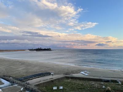海の近くに行くなら海が目の前に見えるところに泊まりたい。と言うことで食事の評判の良い大谷海岸駅前のはまなす海洋館に一泊しました。震災の津波の被害のため、嵩上げ後の建て替えでコンパクトな造りながら、海を見渡せる眺望。気仙沼の海産物を使った美味しい料理。そして優しいスタッフの皆さんによるおもてなし。津波被害抑止のために居住に高さ制限が設けられ、規模の小さなホテルにも関わらずフロントが3階、ラウンジが1階と使いずらいのは、暗に津波の怖さを掲示している建物。海を見ながらの入浴や美味しい食事と海好きにはたまらない。