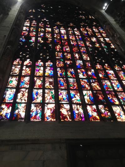 長い年月をかけ造られた大きく美しい白い大理石と多くの尖塔が並び圧巻です。大聖堂の中にある彫刻、ステンドグラスなどの装飾も大聖堂の厳かな空気感をより一層高めてくれるものになっています。もう一つの魅力は屋上テラスから望む景色。お天気の良い日には是非屋上まで上って身近に尖塔と共にミラノの市街地や遠くに見えるアルプスの山並みを見ることをお勧めします