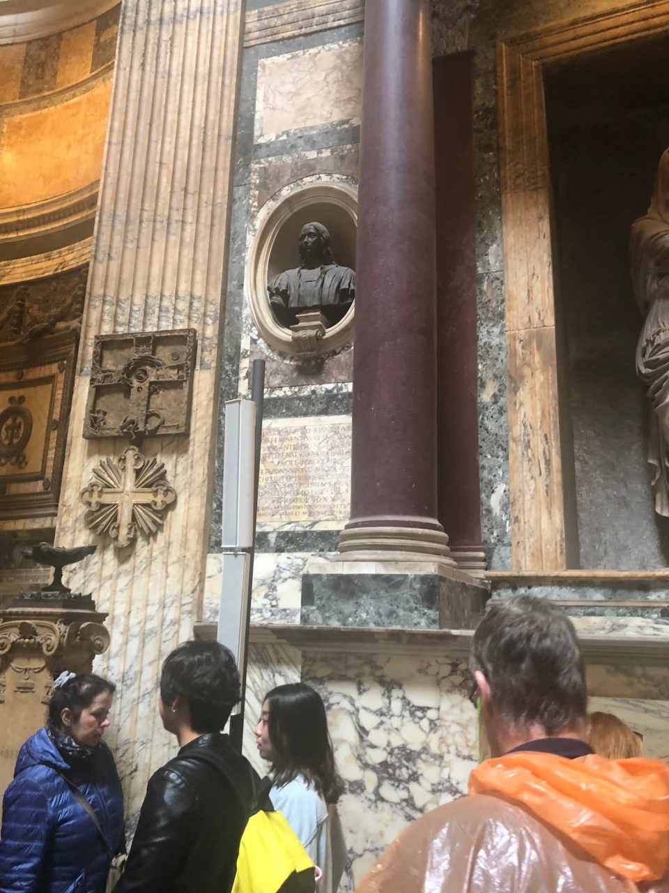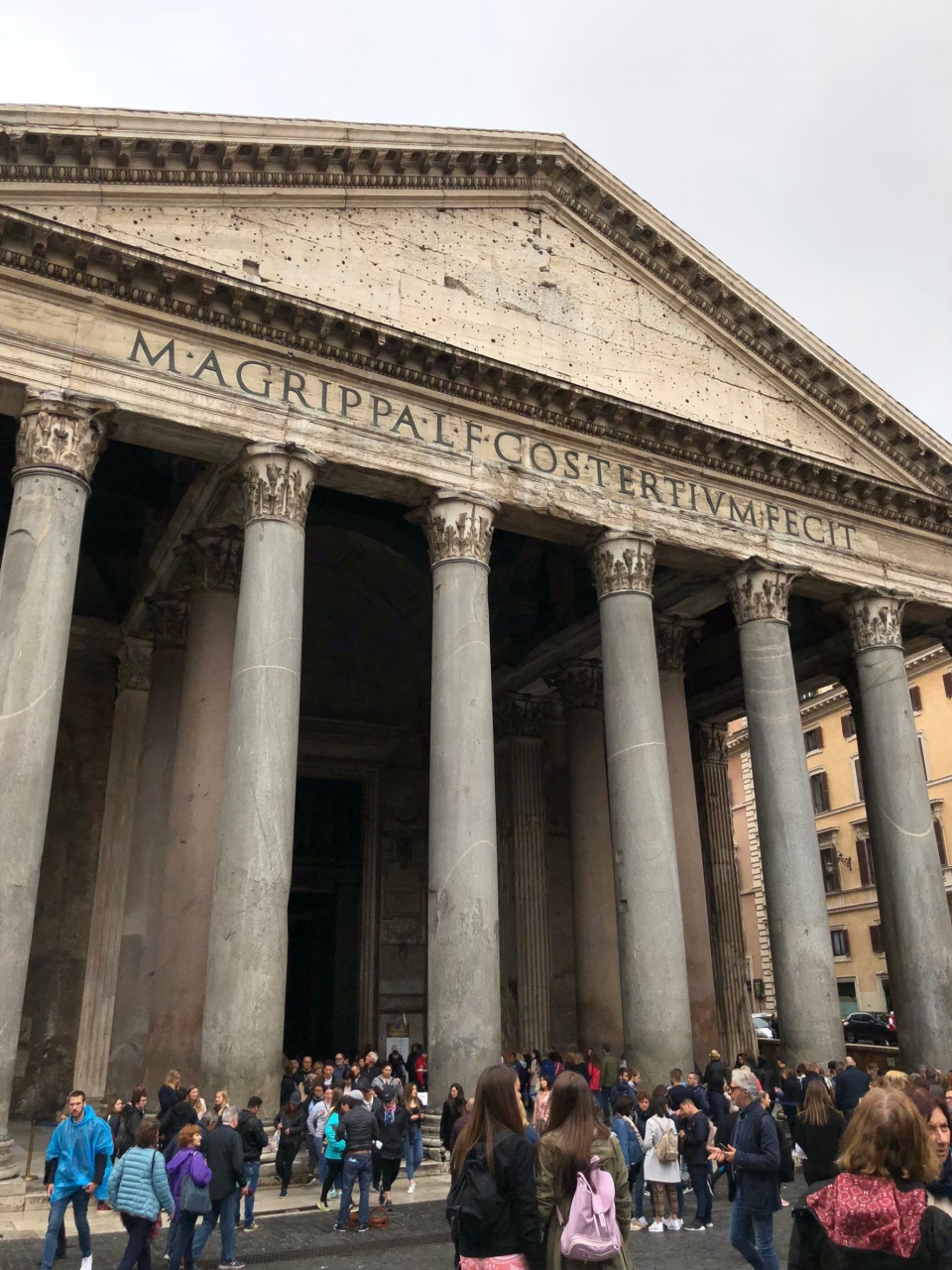 ローマの中心にあり唯一そのままの状態で現存する古代ローマの建造物。南側から見ると一瞬それとは気づかずに見逃してしまうほど、窮屈な場所にあり、北側に回って初めて教科書で見覚えのあるパンテオンであることがわかる。クーポラの真ん中に天窓が開いていて雨が吹き込んだ場合は建物の床にある小さな排水溝から排水される仕組み。ラファエロ、ウンベルト一世、エマヌエーレ二世の墓など功労者を祀る場所。入場無料。