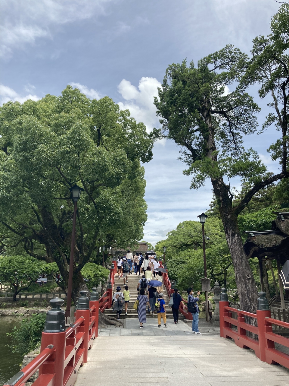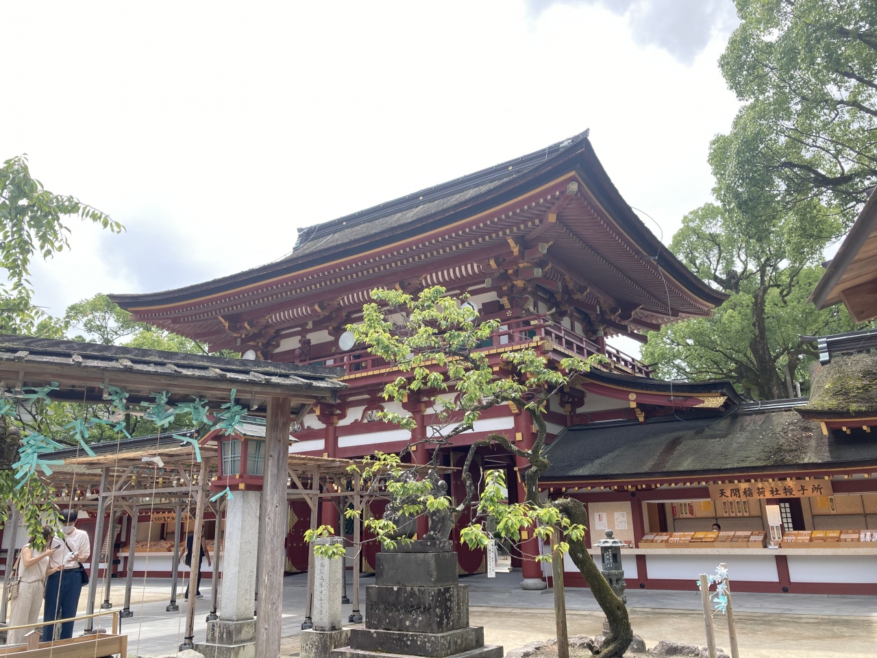 博多駅の屋上にある鉄道神社。神社自体はこじんまりとしていますが、屋上庭園的な場所で子供たちが遊べるスペースや休憩する場所もあり。天気の良い日に展望スペースから綺麗な夕景が見られ、夏の夕暮れ時に気持ちの良い風を感じる場所でした。