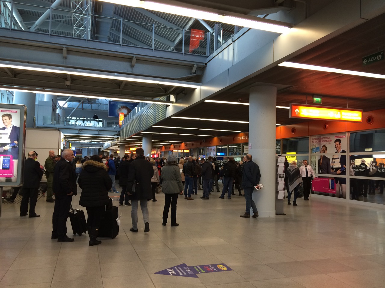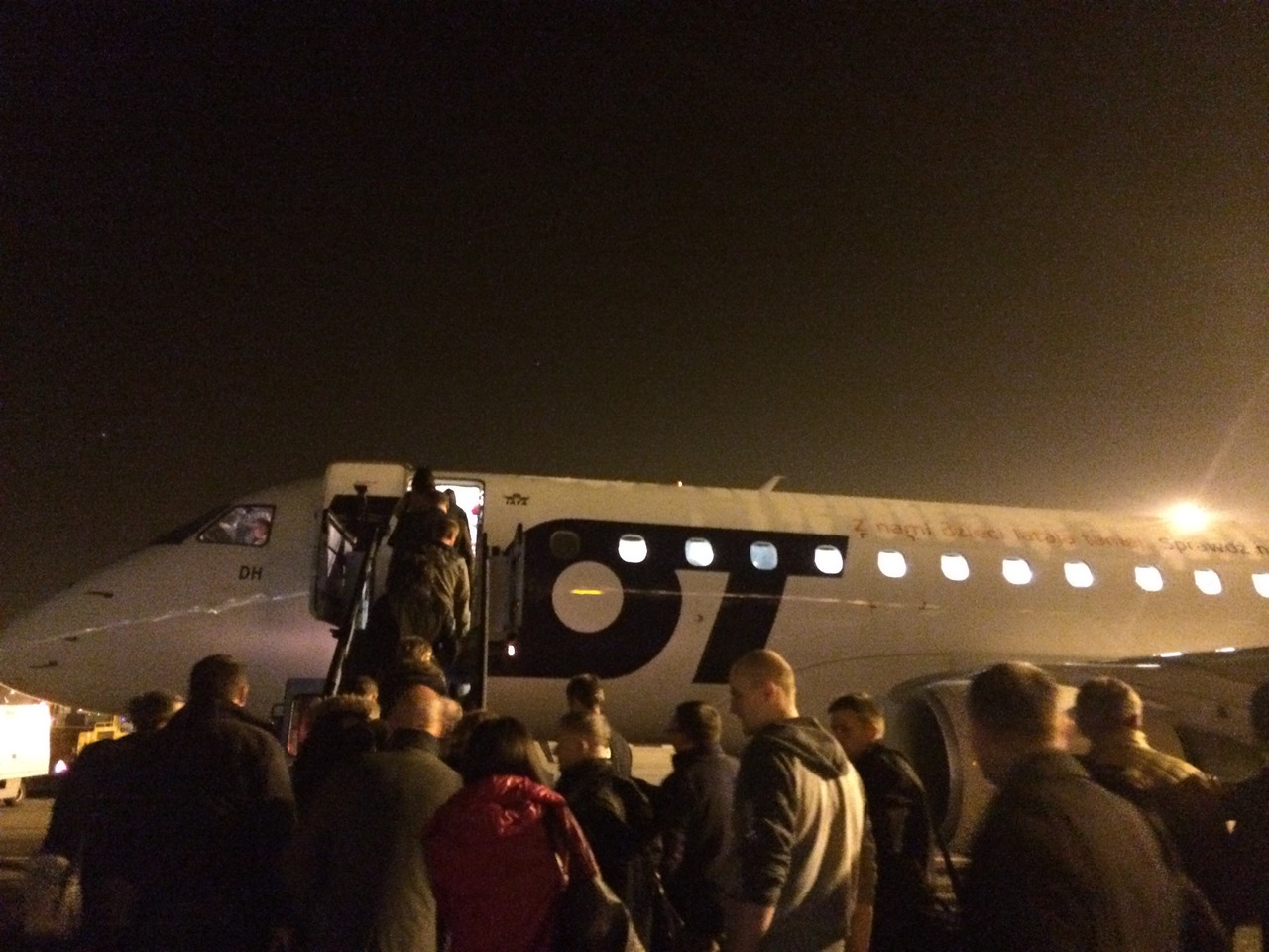 ミュンヘンからワルシャワは19:35発、ゲートから飛行機まではバスで移動しました。2×2の小さい飛行機。