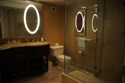 広々とした部屋に、シャワーブースとバスタブがあり、快適なホテルライフを楽しめます。アメニティは一通りそろってはいましたが、質はイマイチ。。。