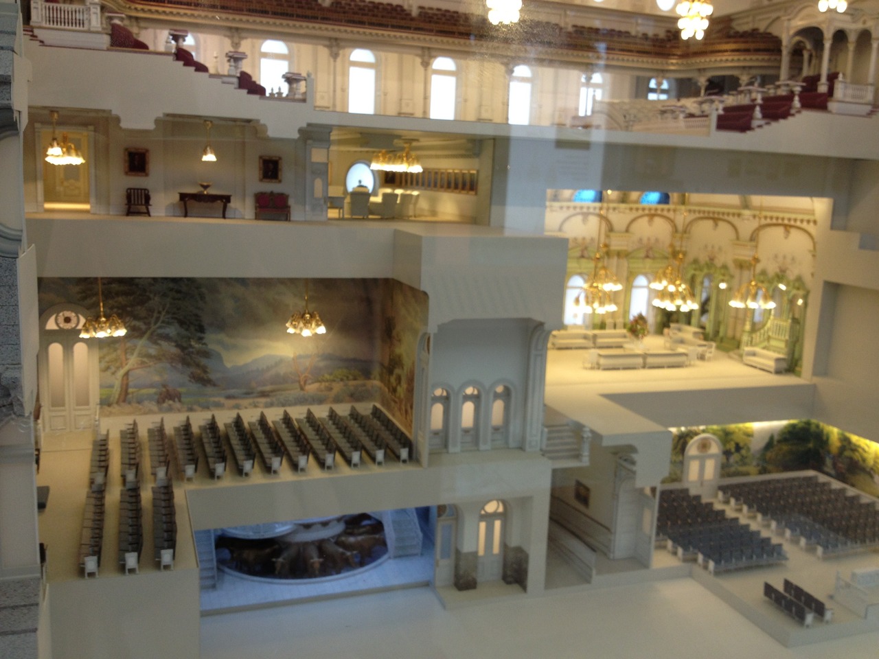 儀式に使われる建物で教徒しか入れてませんが、ビジターセンターに、内部の様子を写したものや、模型がありました。