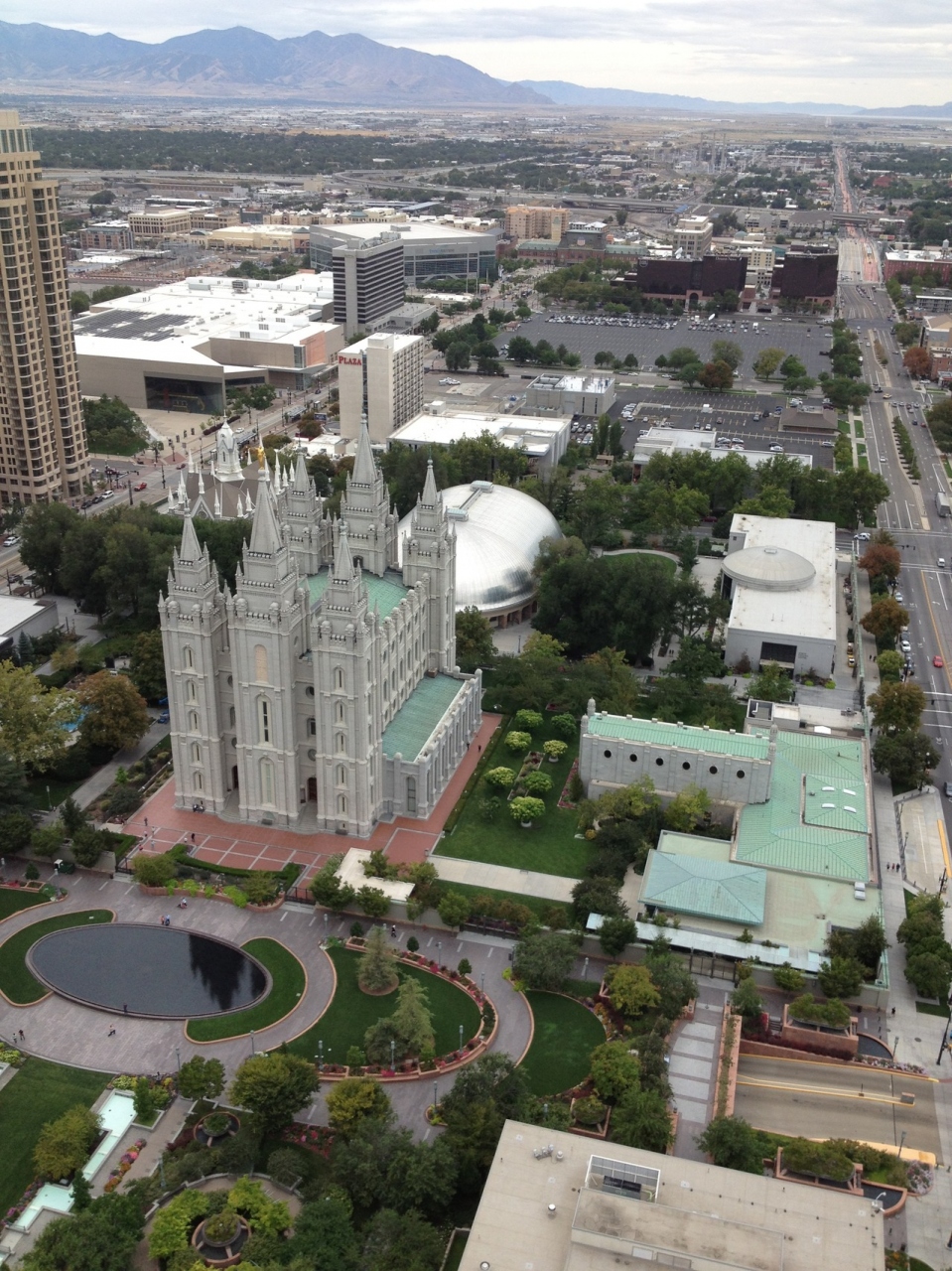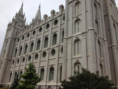 モルモン教の神殿で、ヨーロッパの聖堂みたいな派手さはないものの、六つの塔を持つ、ステキな建物です。