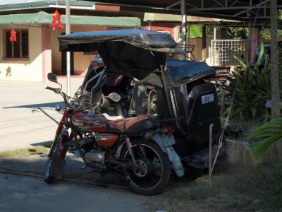 2~3kmくらいまではトライシクルで、それ以上はタクシーの利用が一般的のようです。