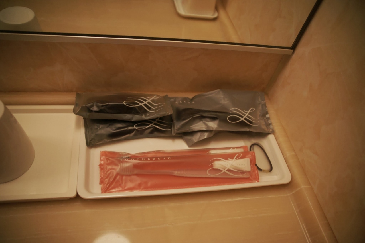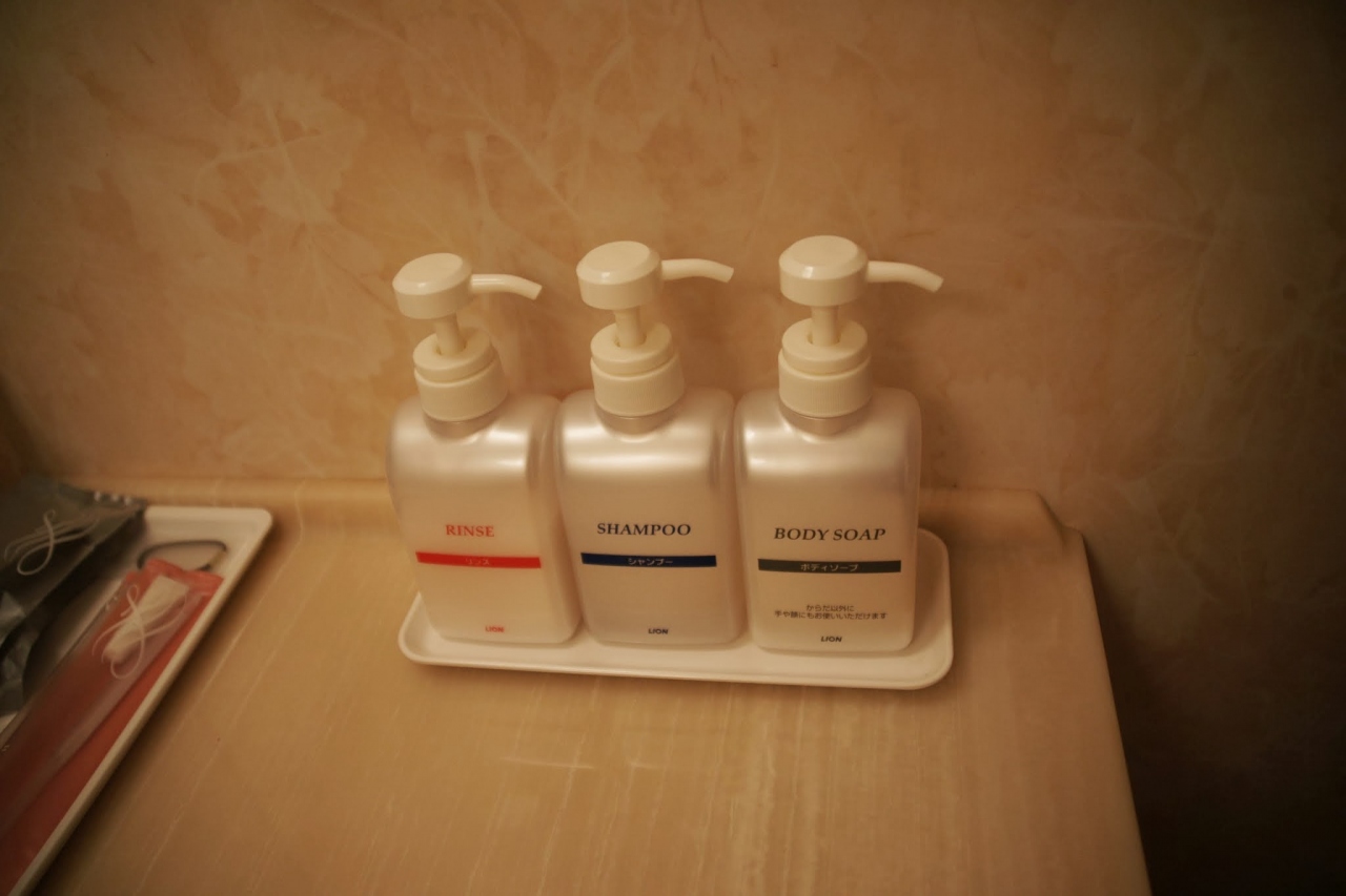備え付けのシャンプー・リンス・ボディソープのほか、歯ブラシやかみそりなどのアメニティが部屋にありました。