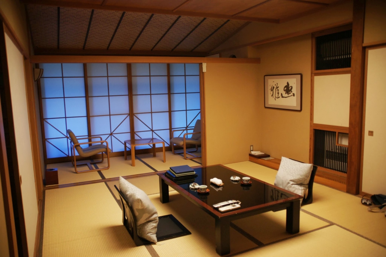 広々とした部屋に、大きめのテレビに、コーヒーテーブルとイスがあり、くつろぐことができました。