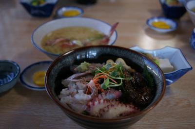 刺し盛丼1,200円で、5・6種類の刺身や漬けが乗っています。