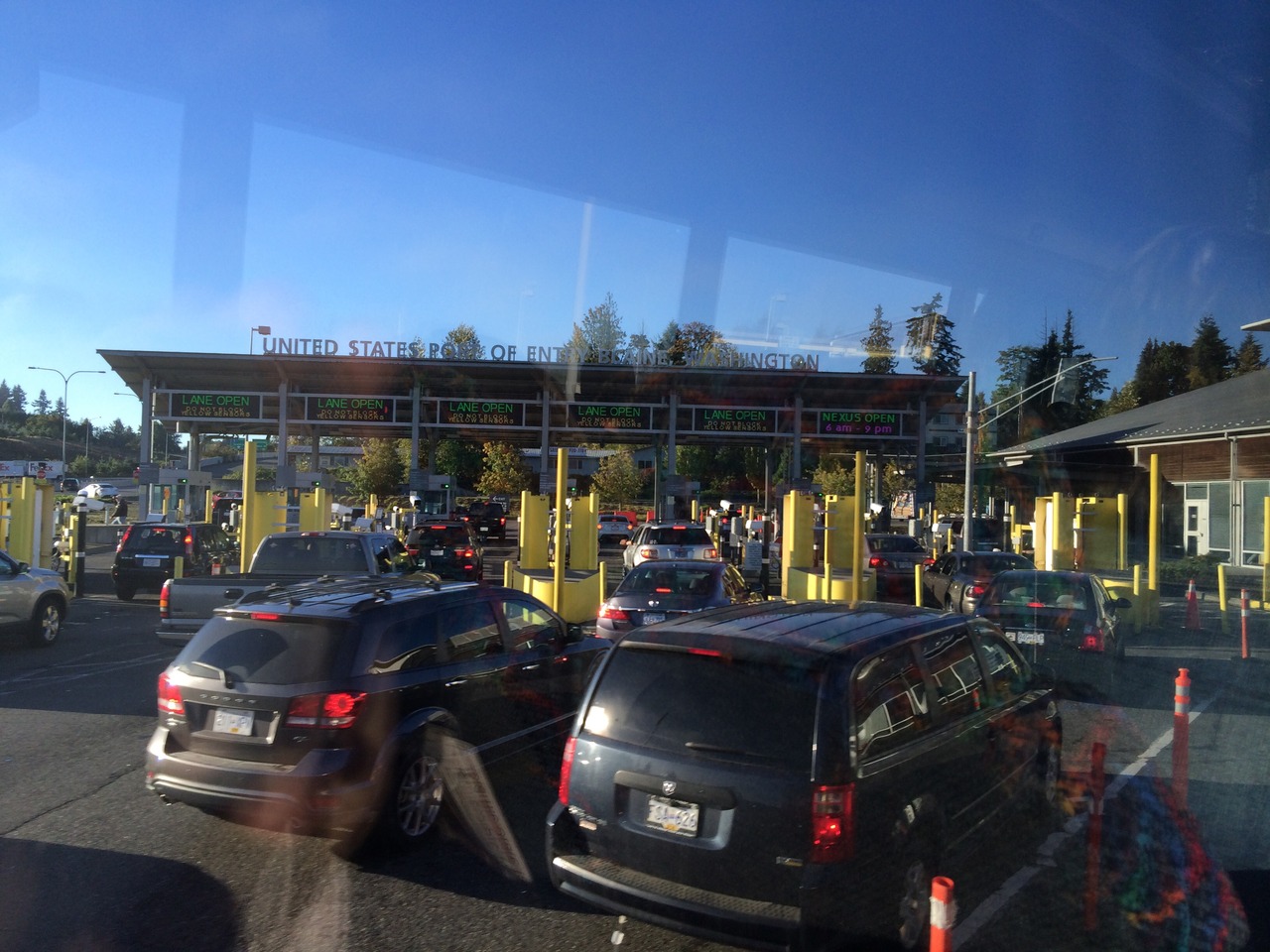 シアトルまでは途中、国境でバスを降りての入国審査があります。