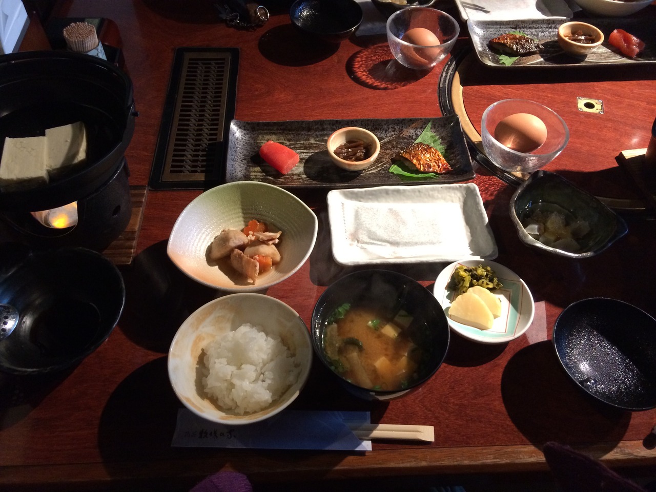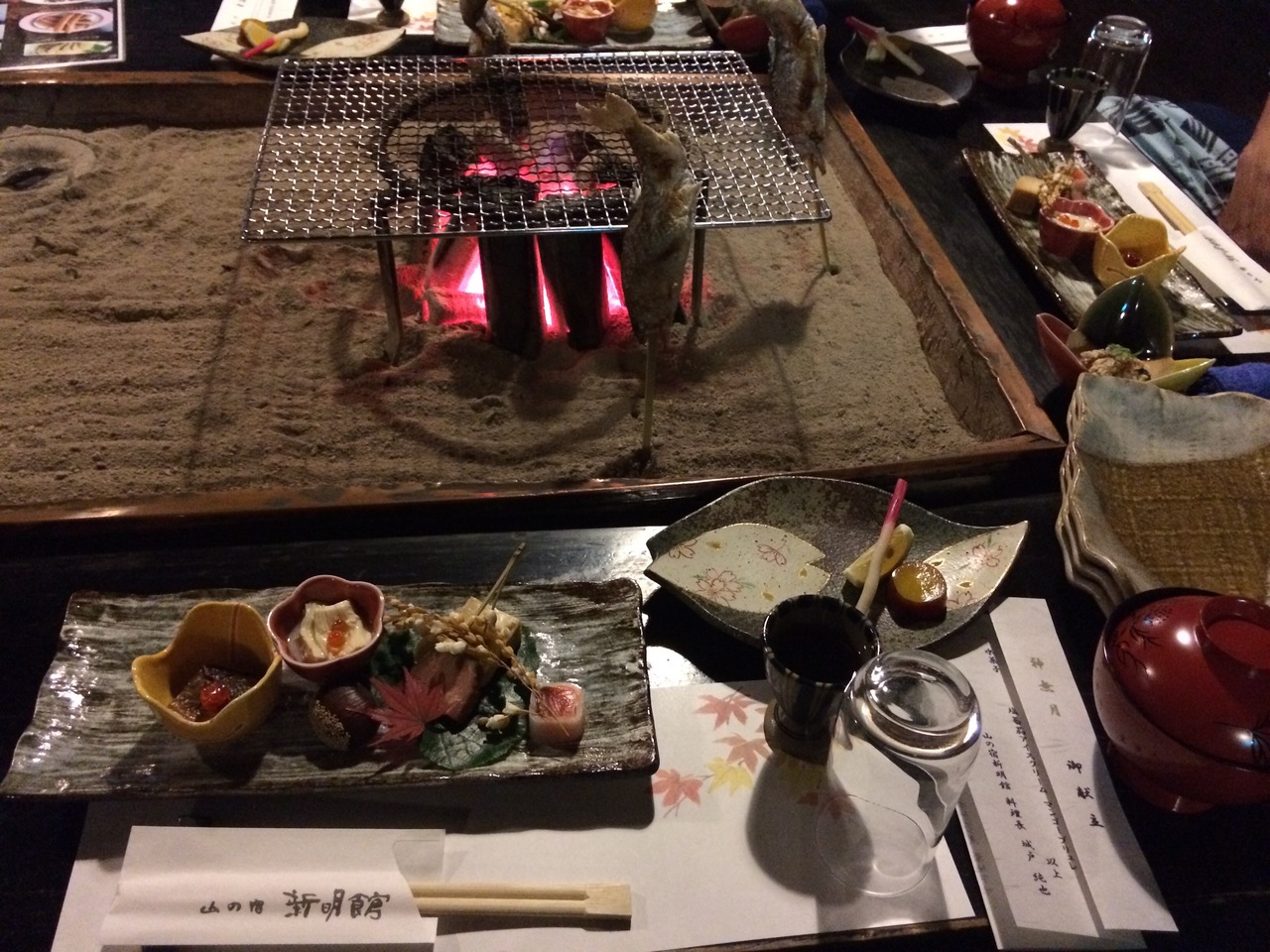 付かず離れずの心地よいおもてなしに、趣ある佇まい、囲炉裏端での料理、そして一風変わった洞窟風呂と三人とも大満足でした。