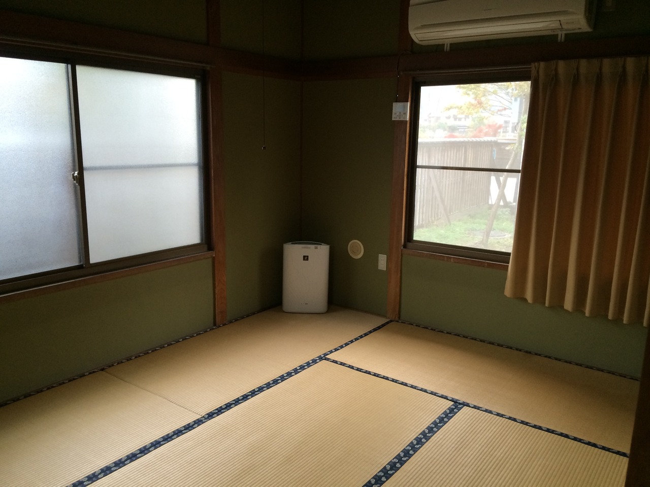 部屋は八畳と広くはないですが、2人では十分。布団は自分で敷きます。