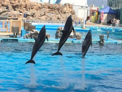 そんなに派手ではないですが、数種類のイルカがそれぞれショーを行ないます。