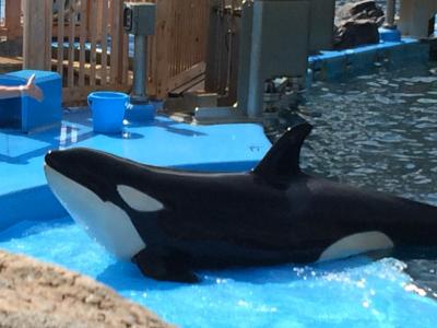 こちらのシャチは、鴨川シーワールドより来たシャチで、まだ訓練中らしく、ショーではなくて公開トレーニングの観覧っと言う形でシャチの芸を見ることができます。