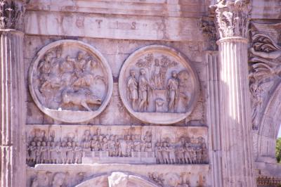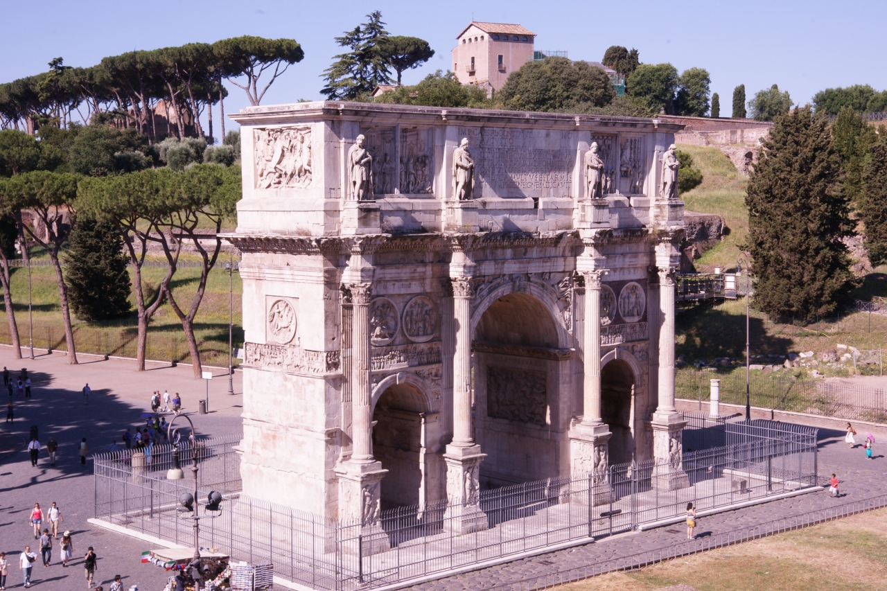西ローマの副帝コンスタンティヌスが、正帝マクセンティウス帝に勝利し、西ローマの唯一の皇帝となった事を記念し建てられた凱旋門です。