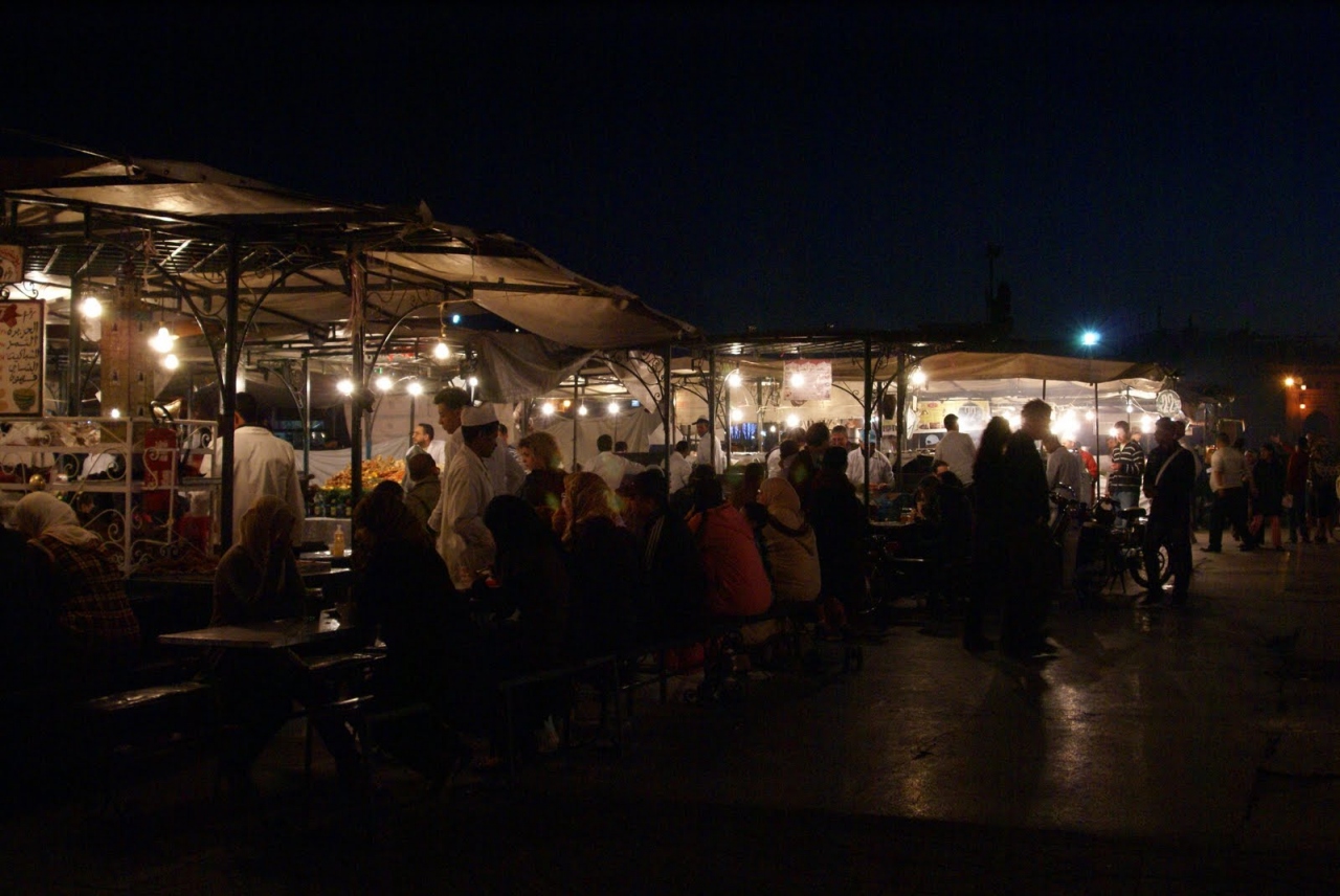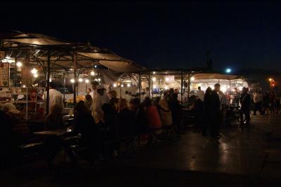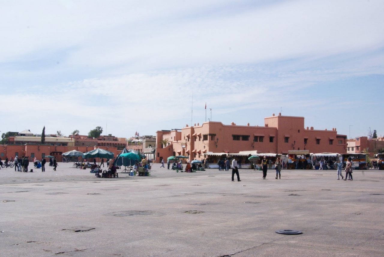 昼間はジューススタンドが、夕方になると大道芸人が出てきて、夜には屋台が出てきて賑わう広場で、マラケシュ旧市街の中心です。