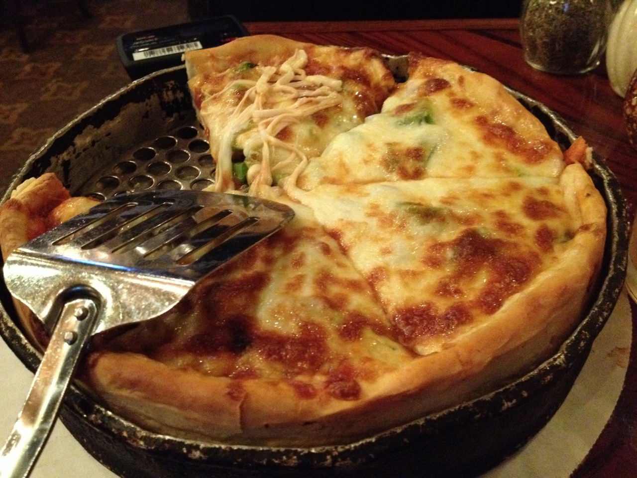 シカゴで有名だという生地の厚いピザがあるお店とのことで、行って来ました。