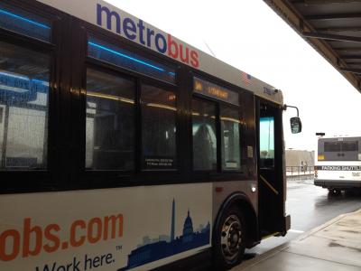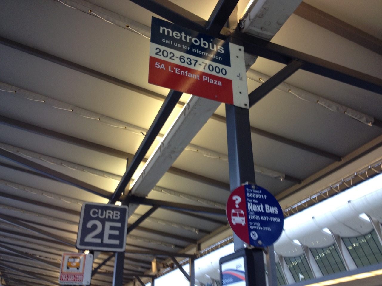 空港からワシントンDCのモール近く、ランファンプラザ駅まで、メトロバスが出ています。モールまで最安ですが、空港内に乗り場までの案内が書いていません。