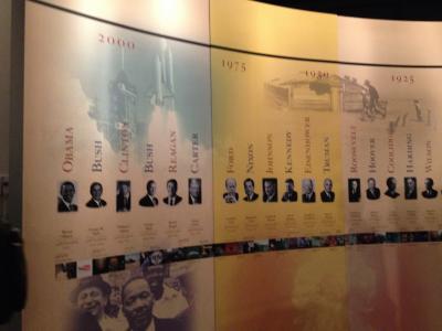 過去数人の大統領が語る大統領と言う仕事についてのインタビュー映像や、歴代大統領の公務で使われたものや私物などの展示のほか、大統領の職務やホワイトハウスでの生活などを知ることができます。