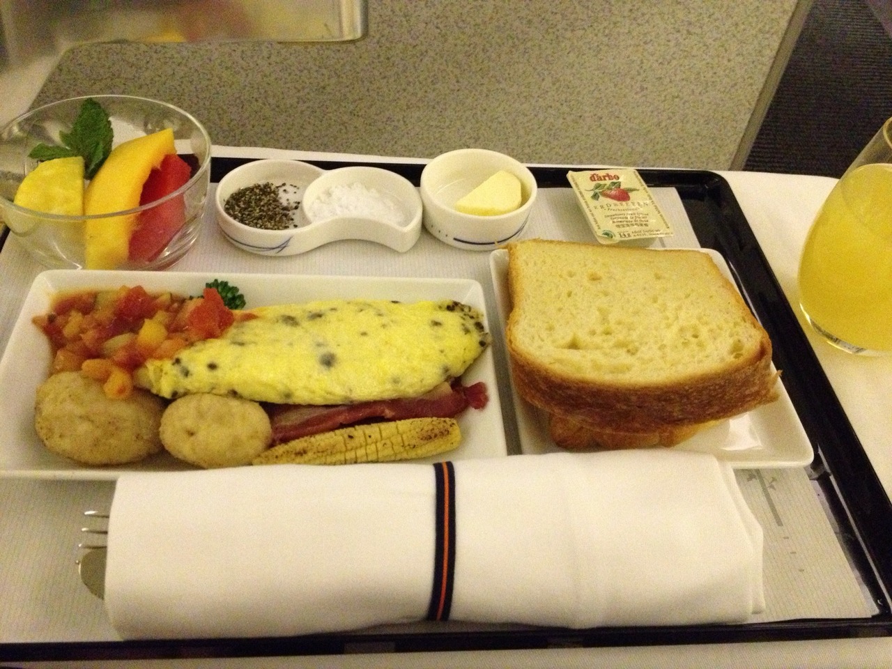 フルブッフェは隣のレストランにて、プラス10ドルでした。5種類位のパンに10種類位のホットミール、5種類位のカットフルーツ、チーズ、サラダ、ハムサラミなど、コンパクトながらも種類は充実していました。