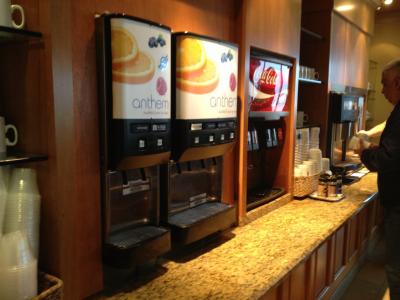 オーナーズクラブの無料朝食は、ロビーにあるスタバで好きなパン、好きな飲み物、数種類からの果物をもらえます。