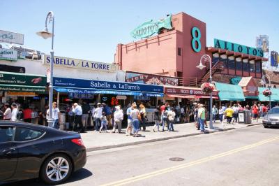 フィッシャーマンズワーフとは、ギラデリ広場からピア35あたりまでのことを言い、たくさんのシーフードショップやレストラン、土産物屋が並んでいます。