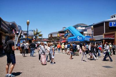 フィッシャーマンズワーフにある桟橋の一つ、ピア39には、遊歩道にベンチはもちろん、レストラン、スーベニアショップ、ワインのお店、クレープ屋、メリーゴーランド、水族館などなどなど、1日遊べる施設が揃っています。