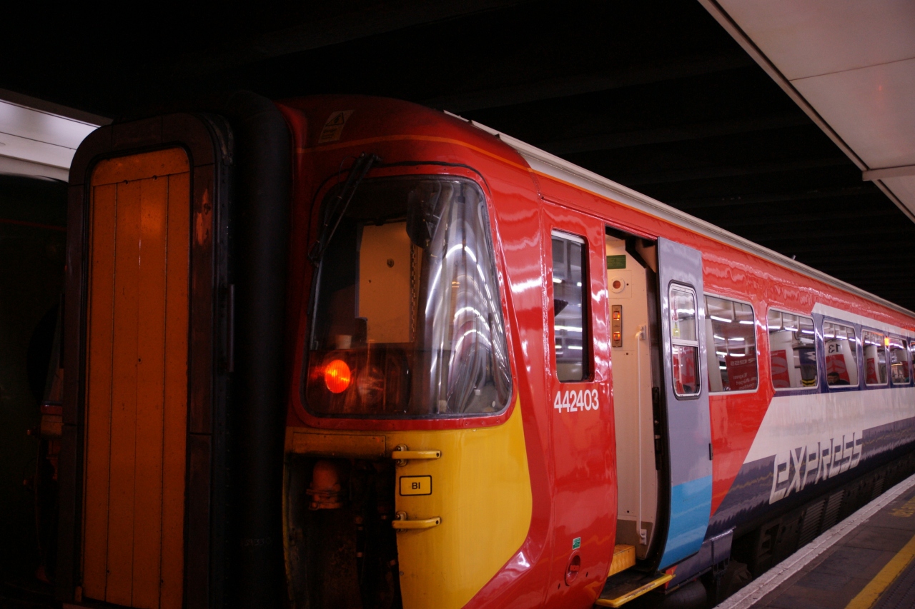 LCCの到着するロンドン・ガトウィック空港へ、ビクトリア駅からノンストップで走っている列車です。平日30分、土日祭日は35分。
