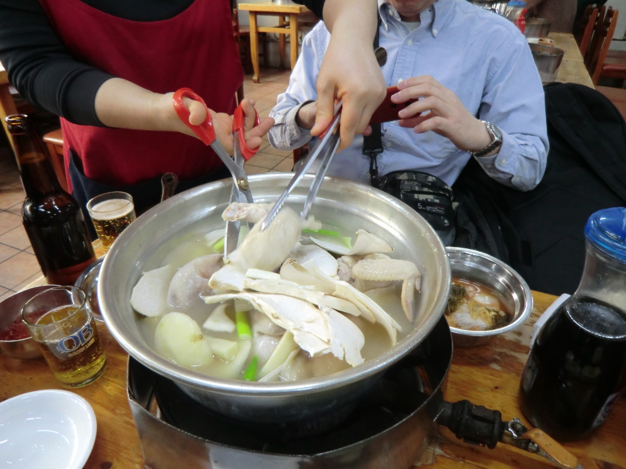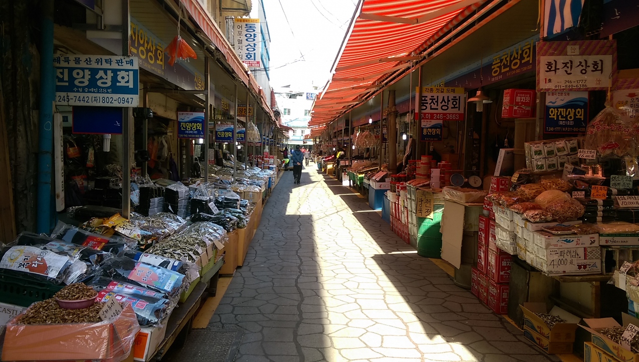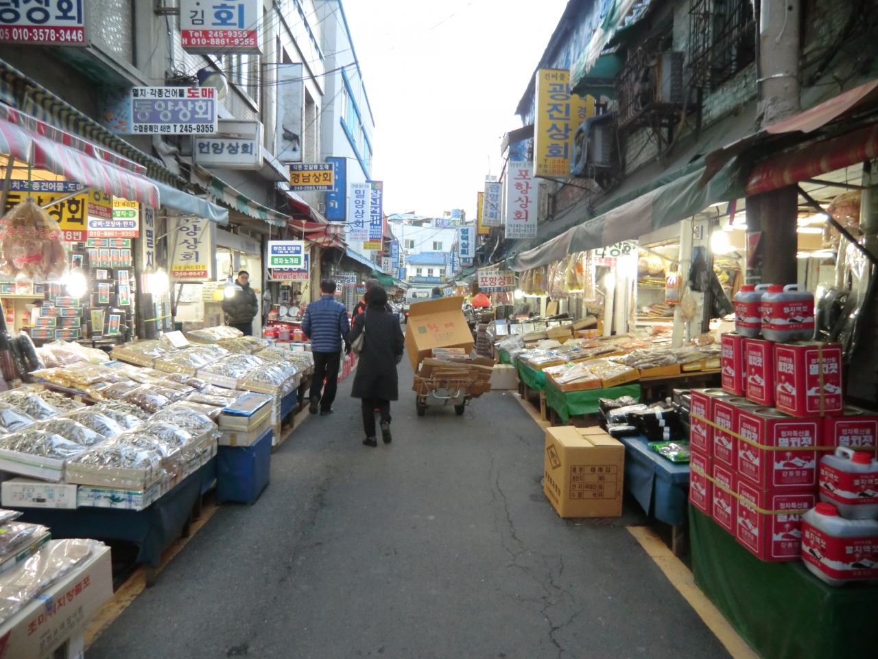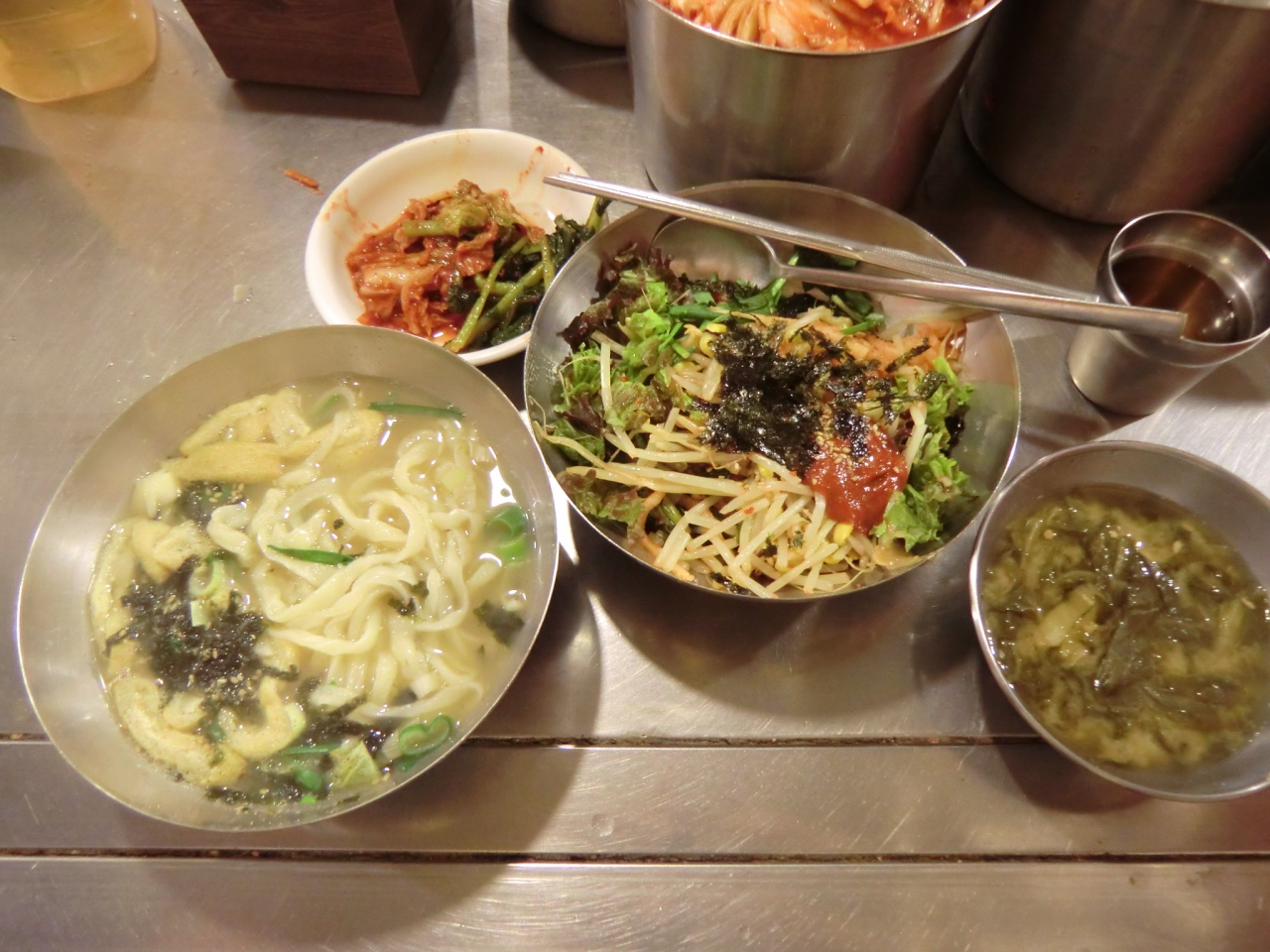 そんな中に、狭い通路に丸椅子が並び、カルグクス(韓国うどん)の激狭食堂が並ぶ、粉食通りがあります。