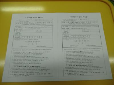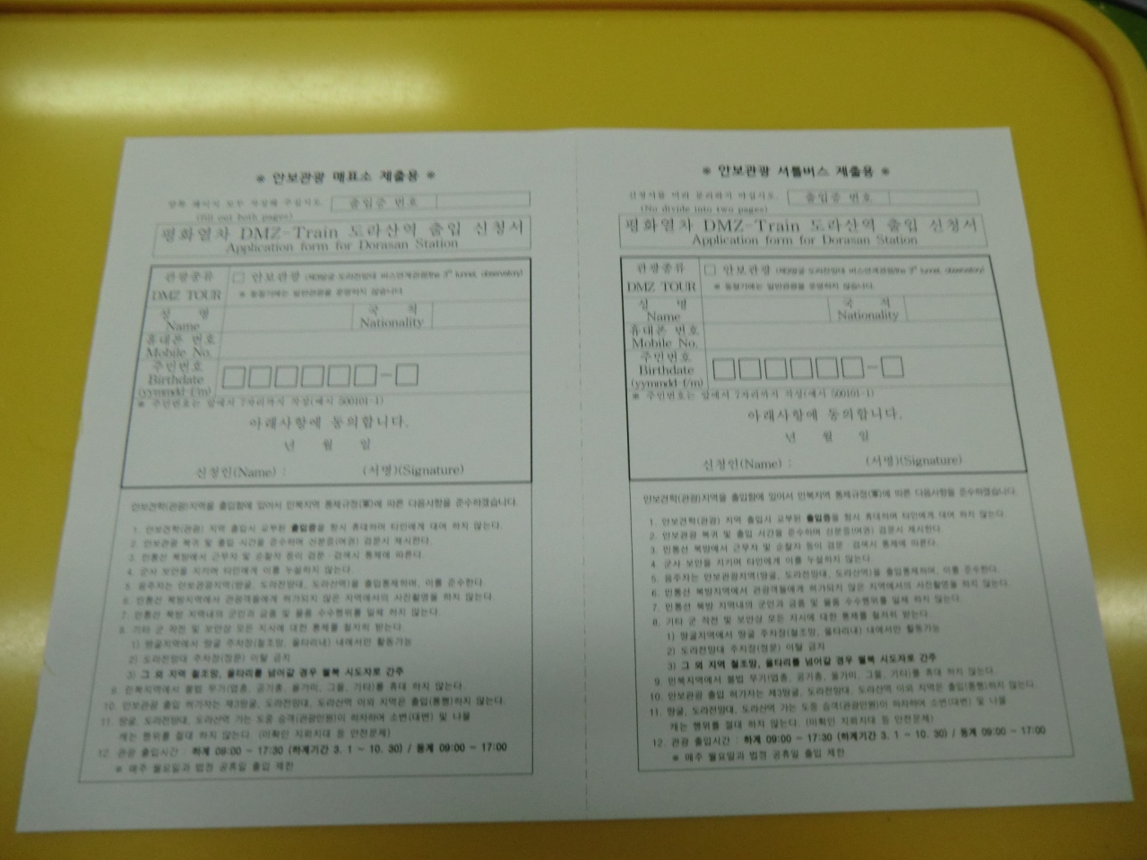 民間人統制区域に入るので、車内で申請書を作成‥氏名・国籍・携帯電話を記入します。