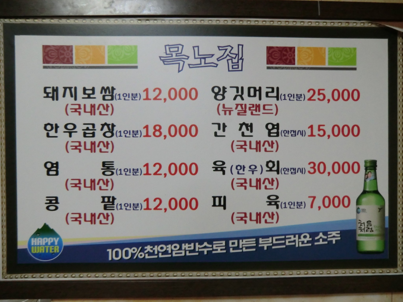 昼食(テンジャンチゲ定食)‥7000ウォン位。