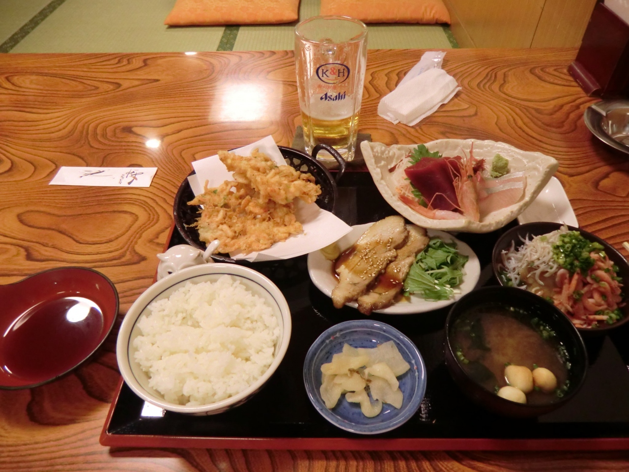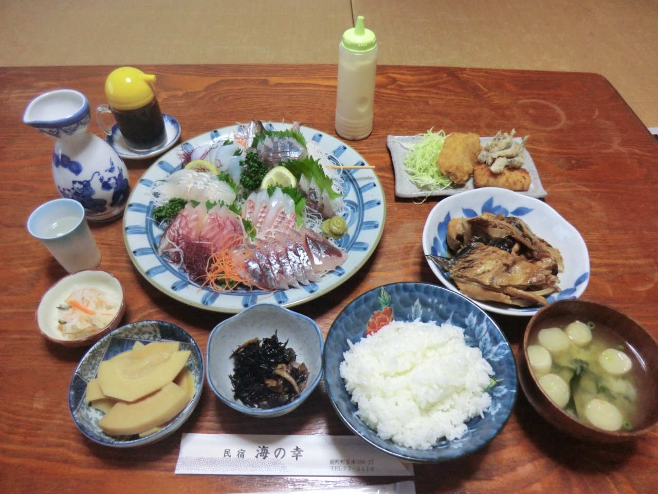民宿の名の通り、夕食は海の幸がテーブルに並びます。